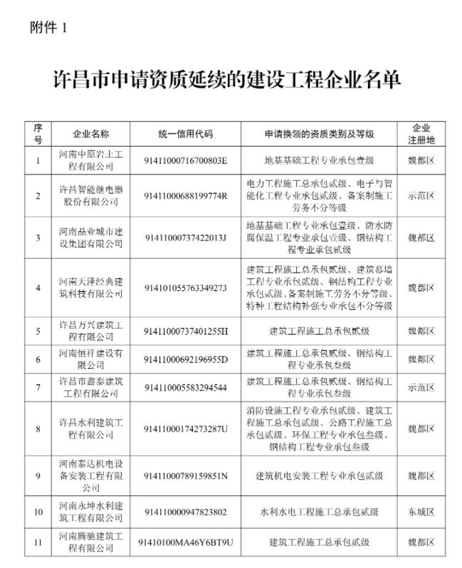 附件:1.许昌市申请资质延续的建设工程企业名单