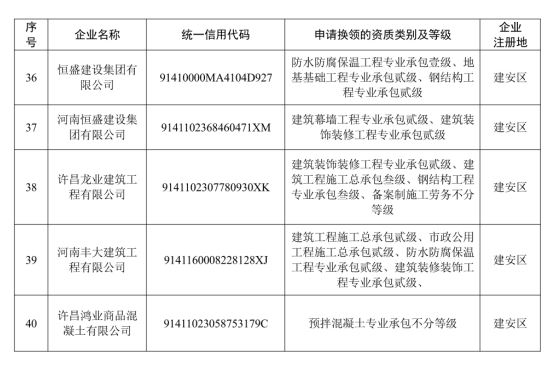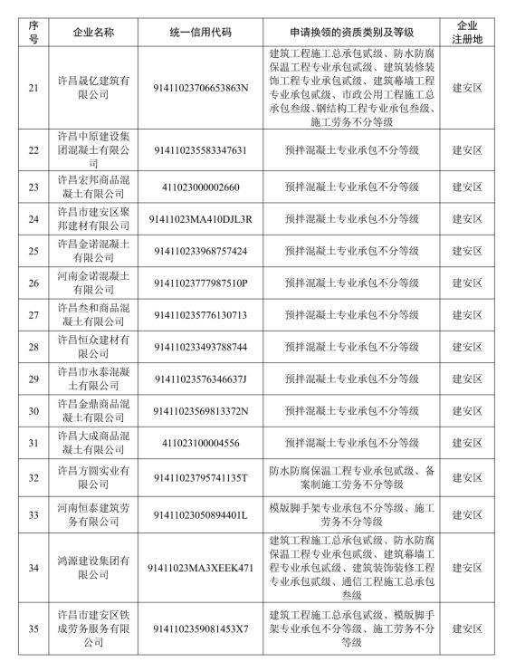 2.许昌市申请换领1年有效期资质证书的建设工程企业名单
